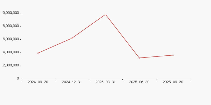 截至2025年9月30日,公司最新总股本为5.71亿股,其中流通股本为3.89亿股。户均持有流通股数量由上期的1.02万股上升至1.07万股,户均流通市值16.92万元。