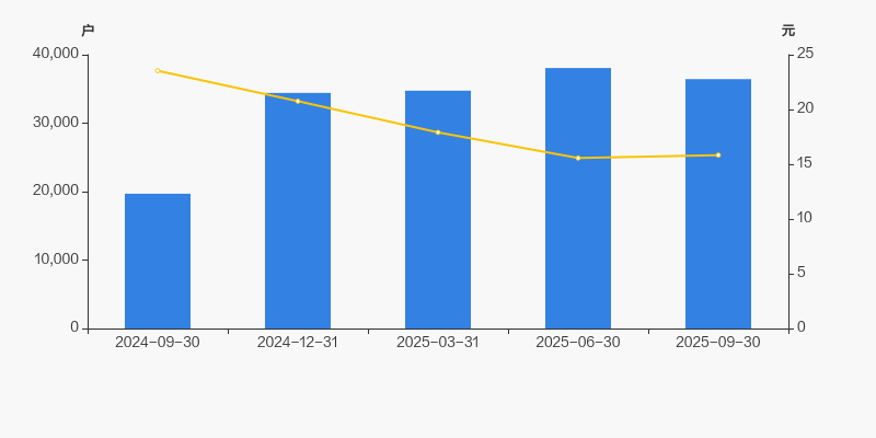 2024年9月30日至今,公司股东户数显著大幅增长,区间涨幅达85.00%。2024年9月30日至2025年9月30日区间股价下降32.74%。