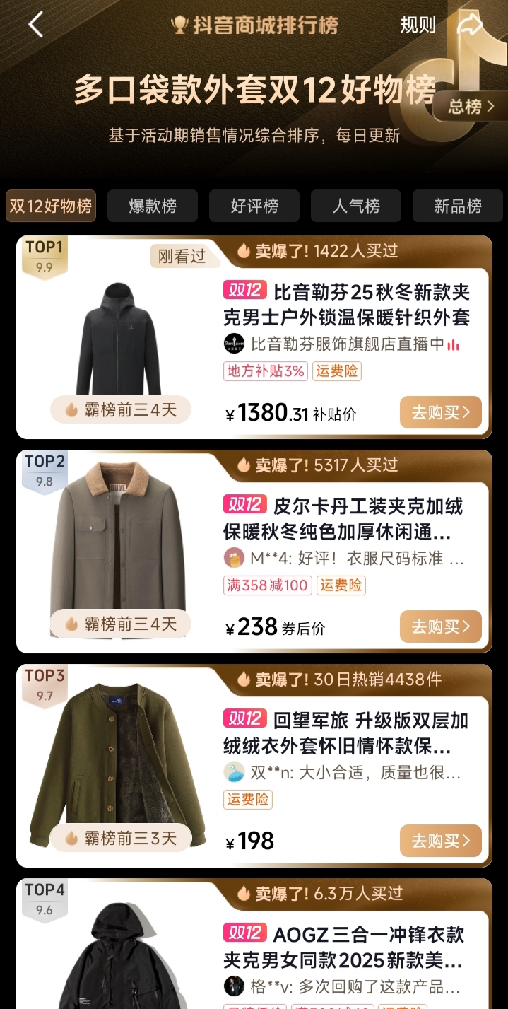 $比音勒芬(SZ002832)$ 拿了个抖音多口袋外套第一