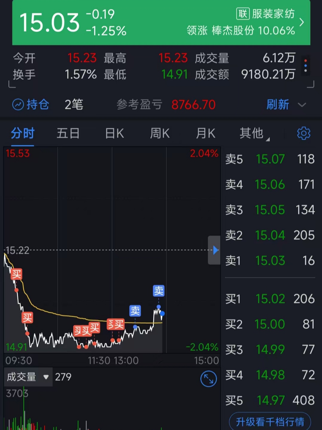 $比音勒芬(SZ002832)$ 15.40以上出了很多,今天接回来大部分。顺手做了个T。随便你怎么演。仓位依旧不重。