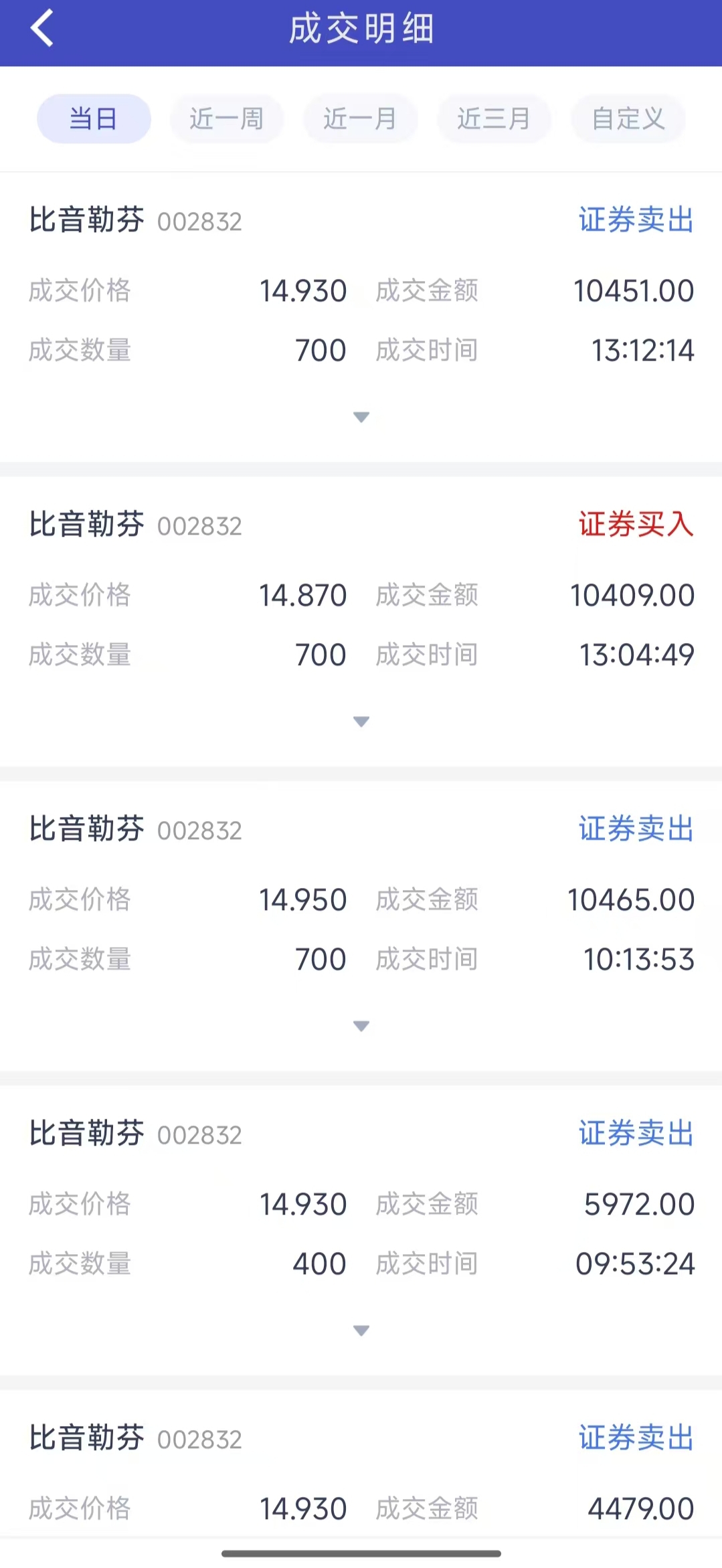 $比音勒芬(SZ002832)$ 爽,今天做T太爽了。低位比音做T。融券做空两个高位lj。两头吃。