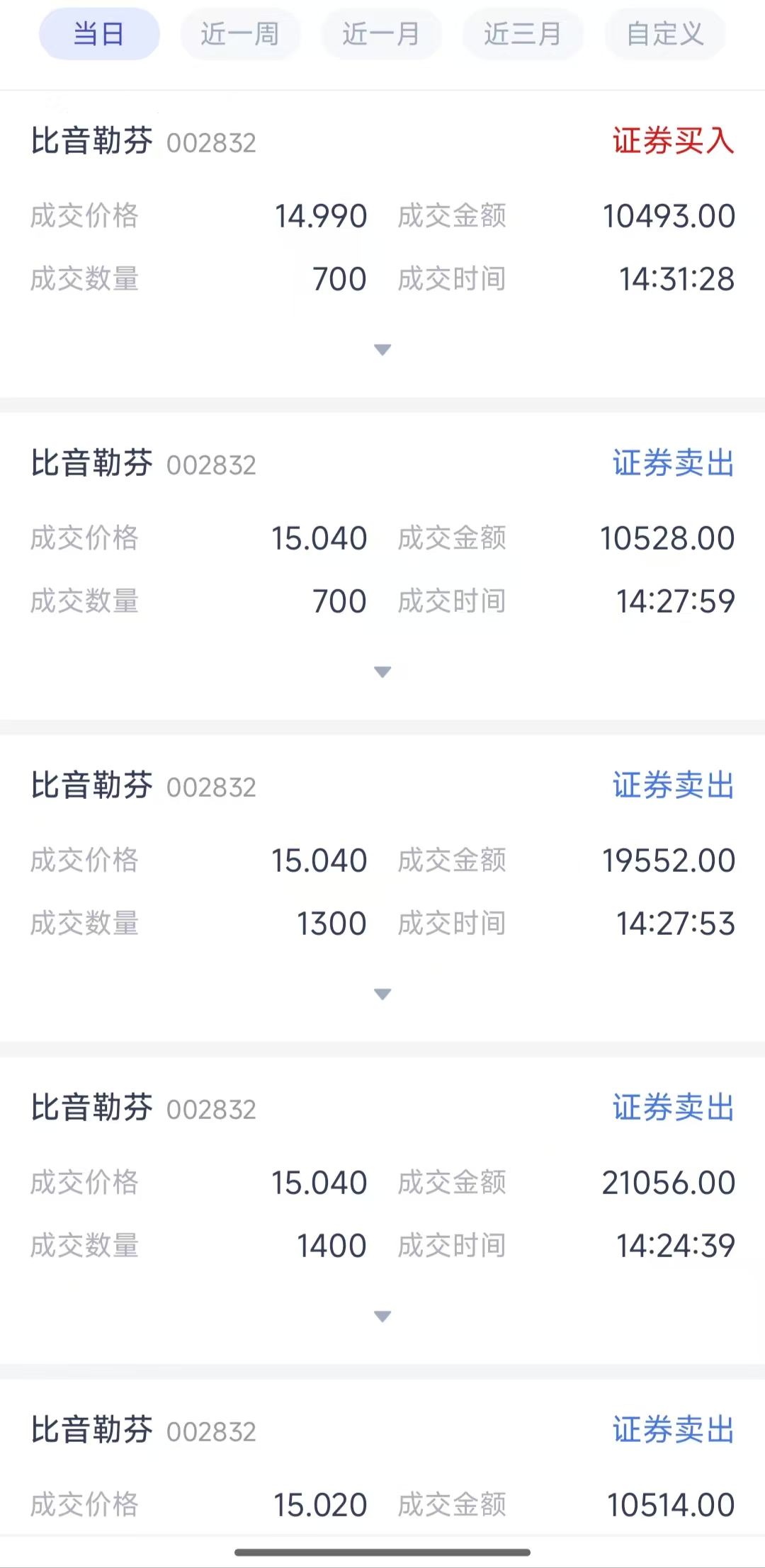 $比音勒芬(SZ002832)$ 释放了我前几天14.94加的大仓位,然后接着做T。那两个高位冒绿光的,好不容易融券融到了。两头吃。某队,来,拉到4500,让我融券多亏点。哈哈,爽。