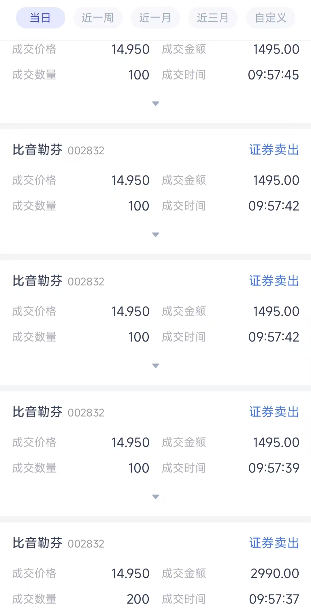 14.89买入的,14.95卖出,14.79买入的,14.84卖出。还有两个70
