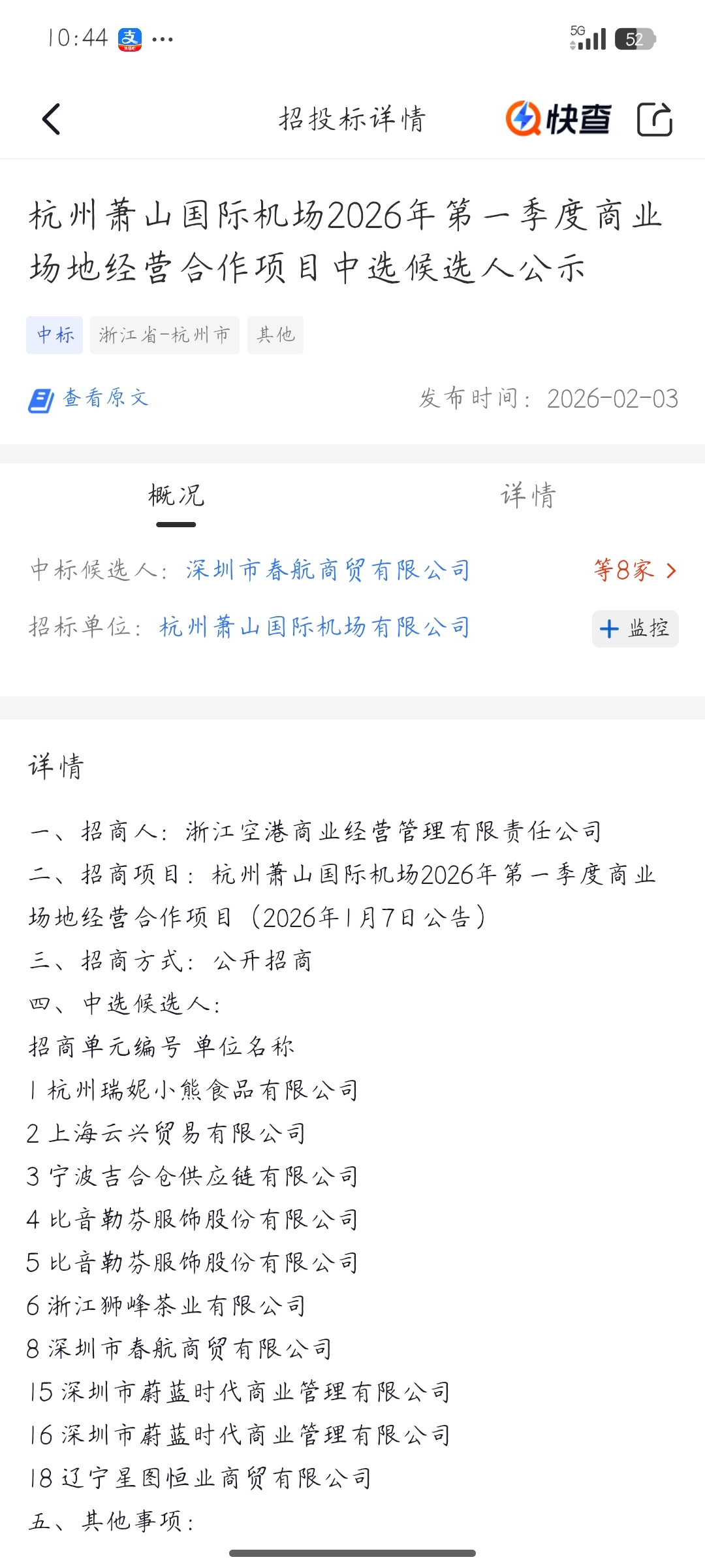 中标了