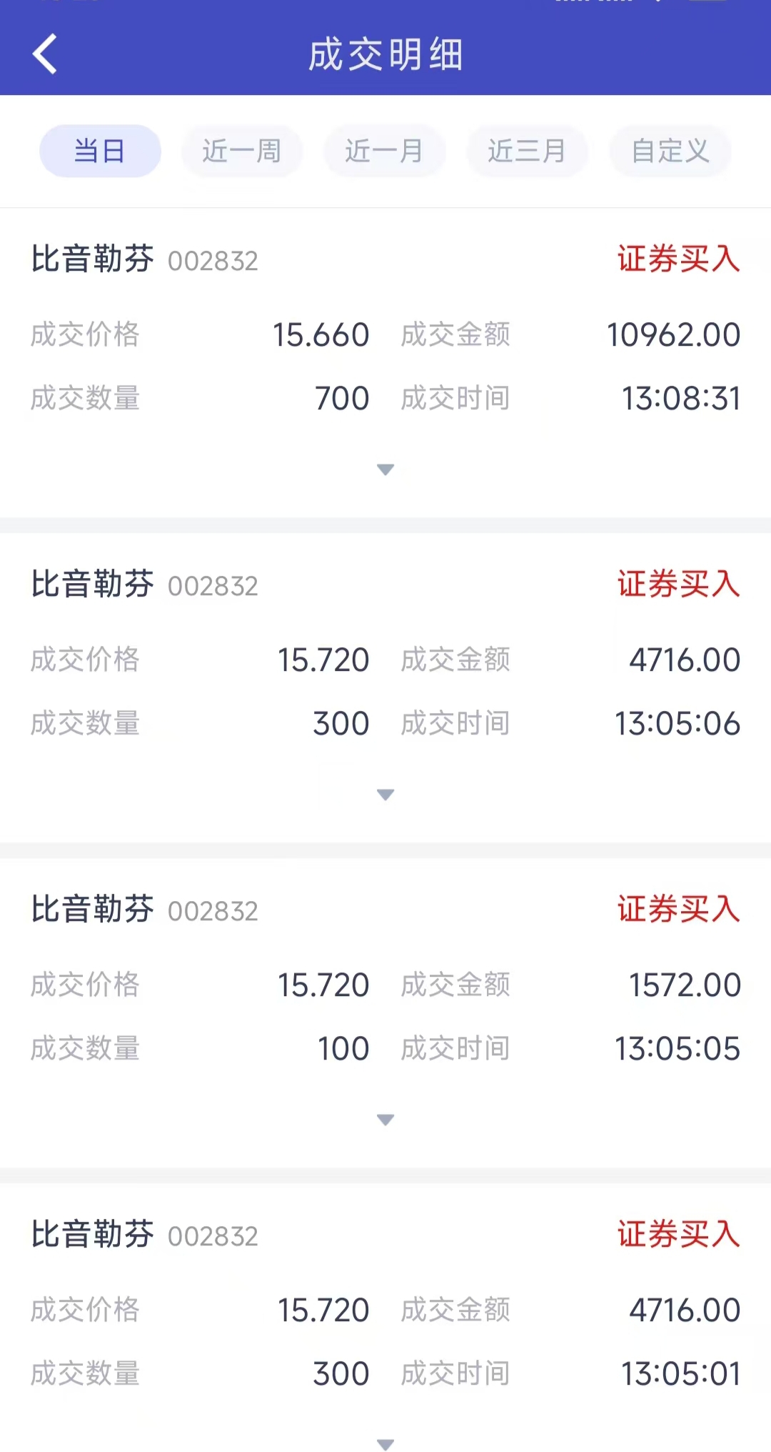 $比音勒芬(SZ002832)$ 15.80卖了太多,把不动的融资融券账户都卖了部分,然后把剩下的融资融券账户里的划入普通账户,今天15.72,15.65先接两万。明天普通账户就又有股份可以做T了。在比音盈利接近4万了。