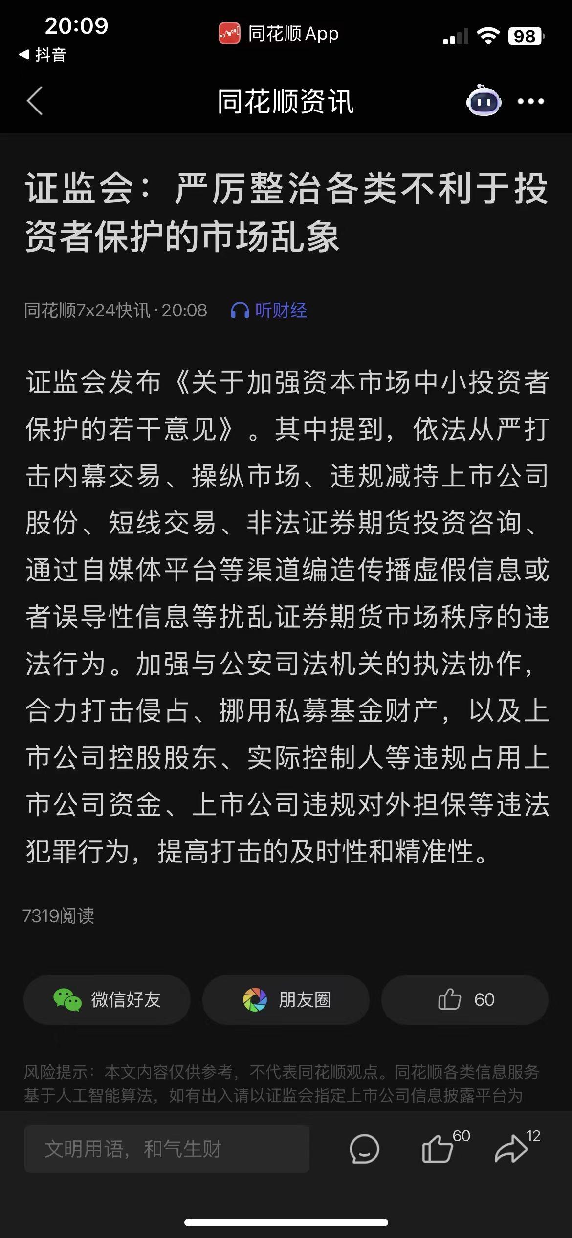 温馨提示: 1.根据《证券法》规定,禁止编造、传播虚假信息或者误导性信息,扰乱证券市场;2.用户在本社区发表的所有资料、言论等仅代表个人观点,与本网站立场无关,不对您构成任何投资建议。用户应基于自己的独立判断,自行决定证券投资并承担相应风险。《东方财富社区管理规定》