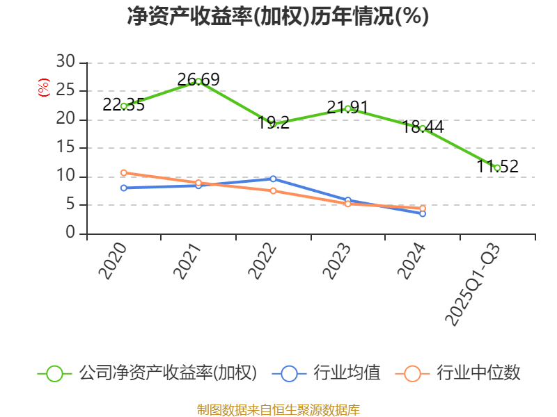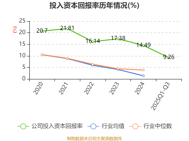 盈利能力方面, 2025年前三季度公司加权平均净资产收益率为11.52%,同比下降4.52个百分点。公司2025年前三季度投入资本回报率为9.26%,较上年同期下降3.46个百分点。