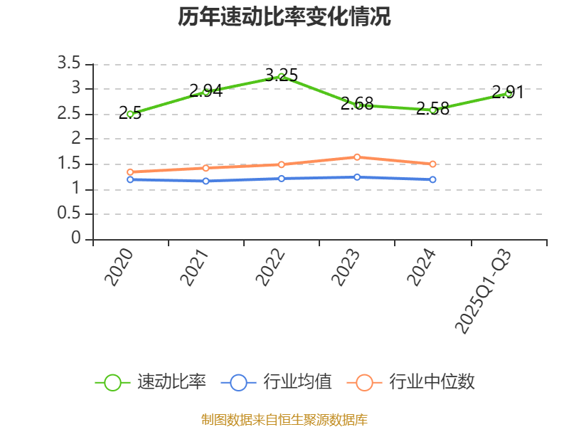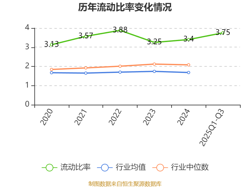 2025年前三季度,公司流动比率为3.75,速动比率为2.91。