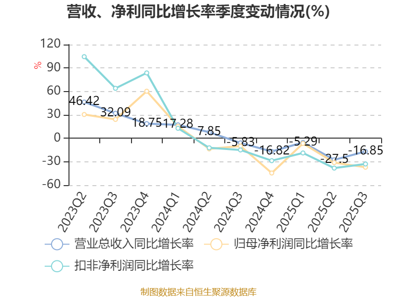 资产重大变化方面,截至2025年三季度末,公司固定资产较上年末减少2.82%,占公司总资产比重下降2.32个百分点;交易性金融资产合计较上年末增加52.94%,占公司总资产比重上升1.93个百分点;货币资金较上年末增加11.33%,占公司总资产比重上升1.51个百分点;应收款项融资较上年末减少55.94%,占公司总资产比重下降1.26个百分点。