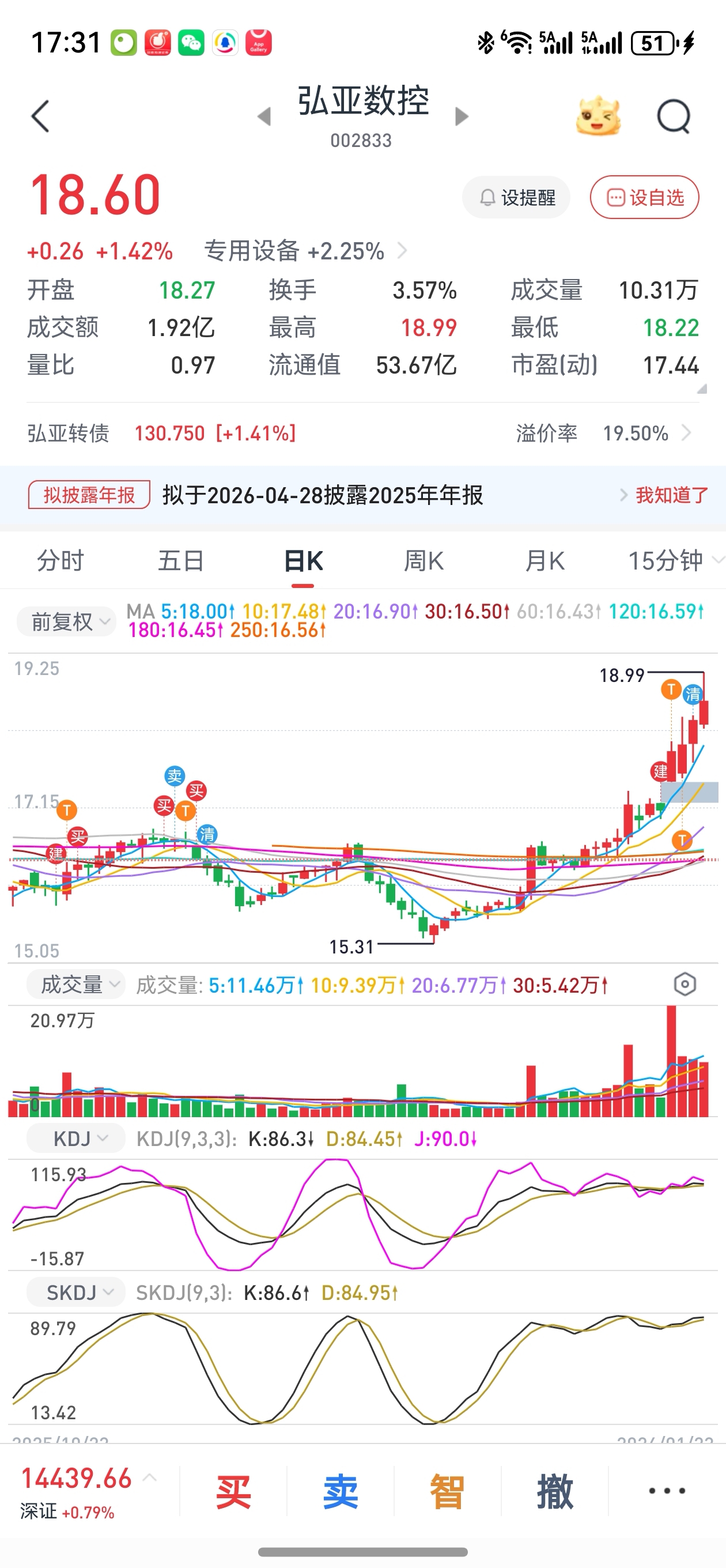 $弘亚数控(SZ002833)$ 卖早了,等回调。。。