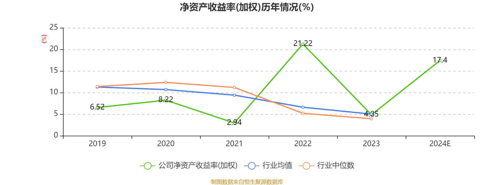 数据显示,2024年公司加权平均净资产收益率为17.4%,较上年同期上升12.55个百分点。