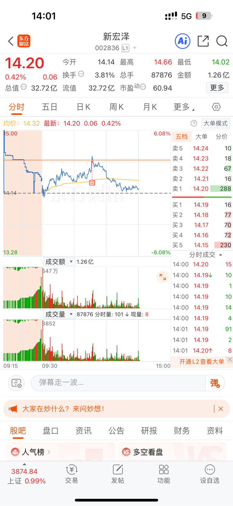 $新宏泽(SZ002836)$ 不好意思各位,我见他涨的太厉害买了1手给他降降温