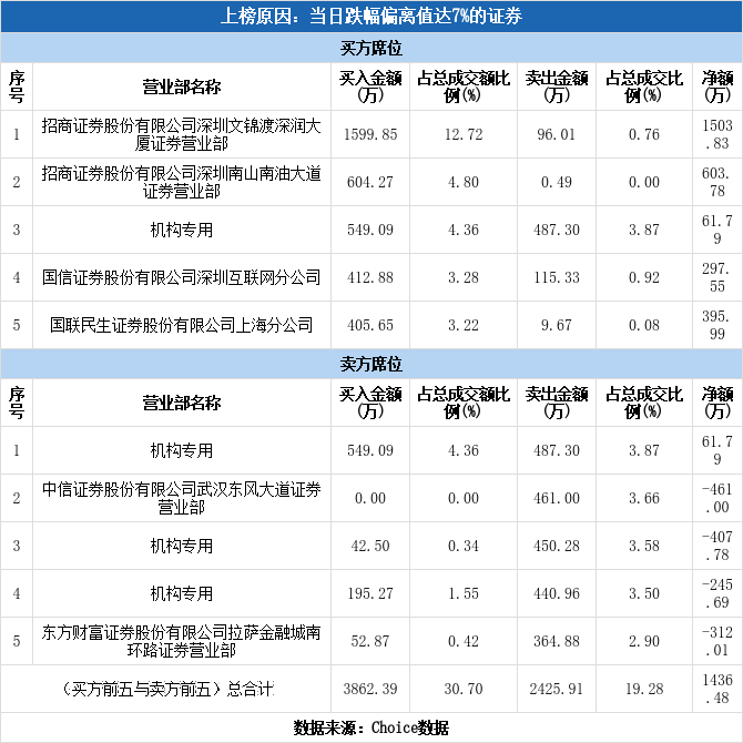 多主力现身龙虎榜,新宏泽跌停(12-15)