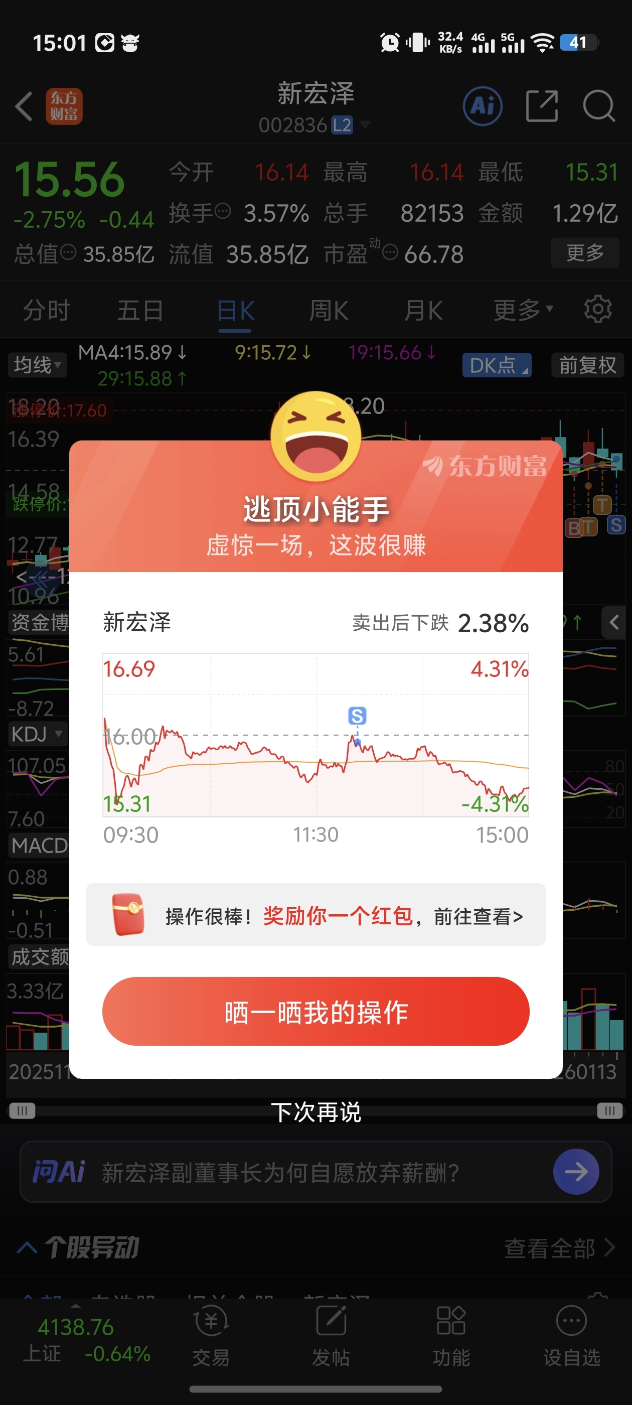$新宏泽(SZ002836)$ 感觉不对劲跑了。收益还是少了一半多