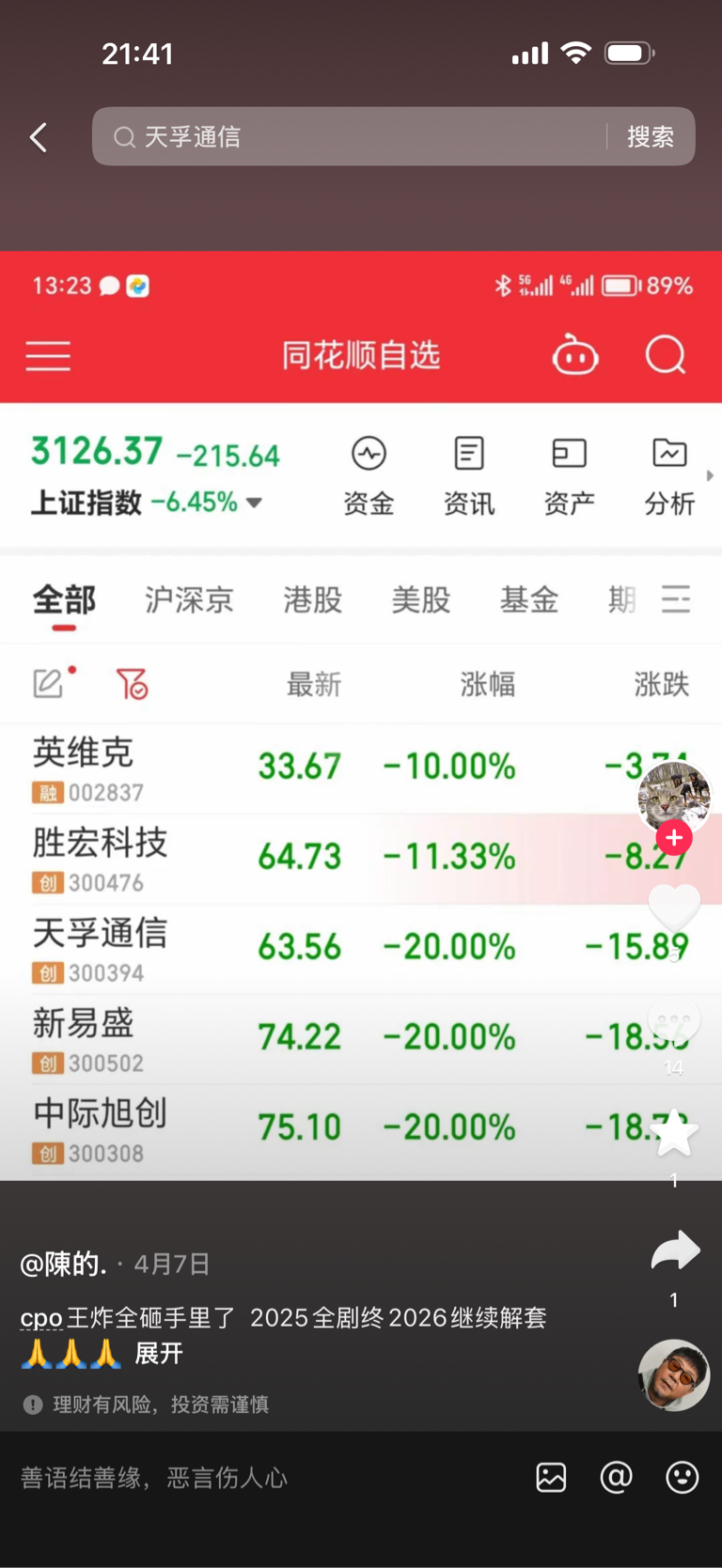 $英维克(SZ002837)$ 四月七号大跌时最牛逼的人做出的最牛逼的预测,只待一号种子英维克在未来一两年内做出最牛逼的回应