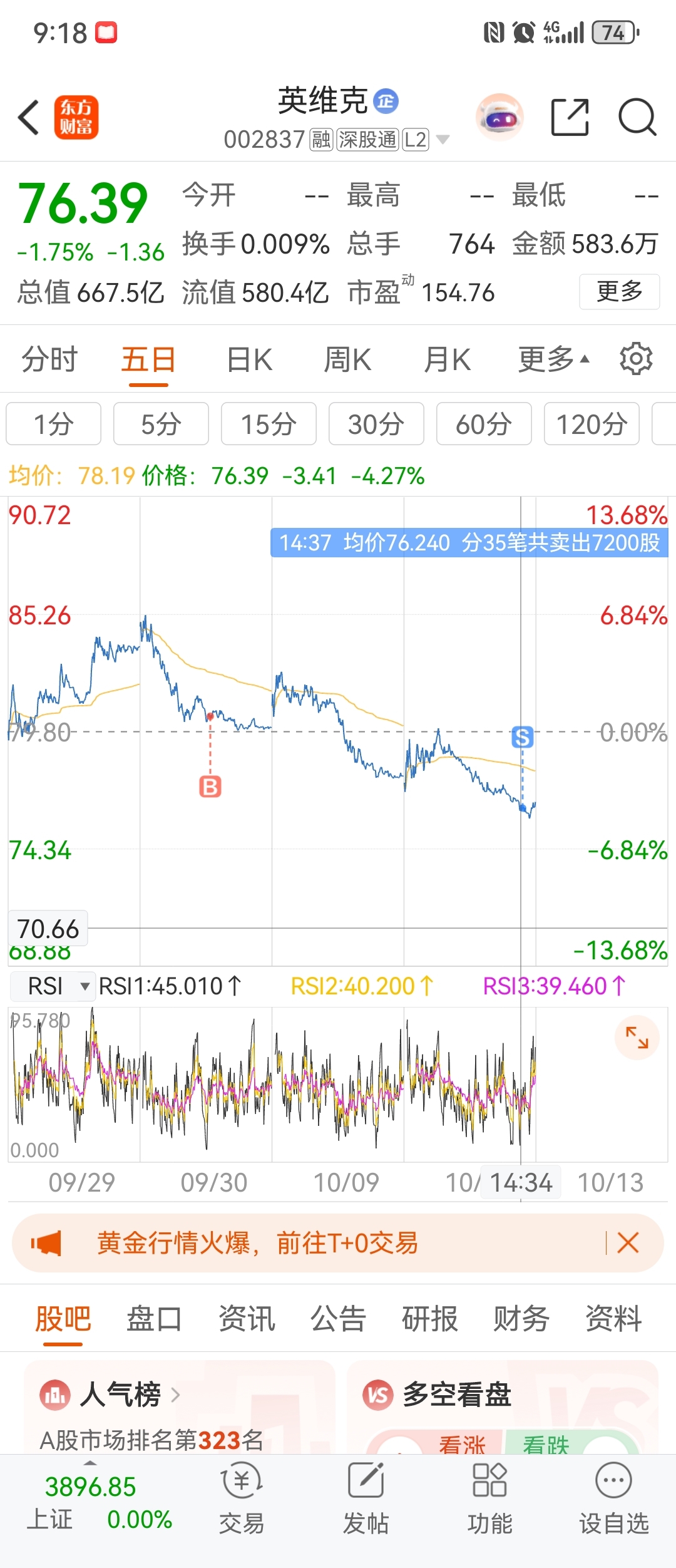 $英维克(SZ002837)$ 还好,周五卖一半亏损不大,能接受