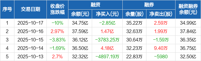 英维克:融资净偿还2.85亿元,两市排名第11(10-17)