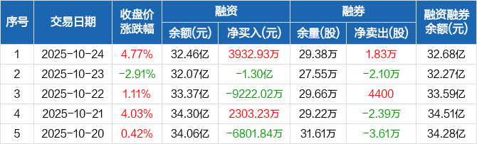 英维克:融资净买入3932.93万元,融资余额32.46亿元(10-24)
