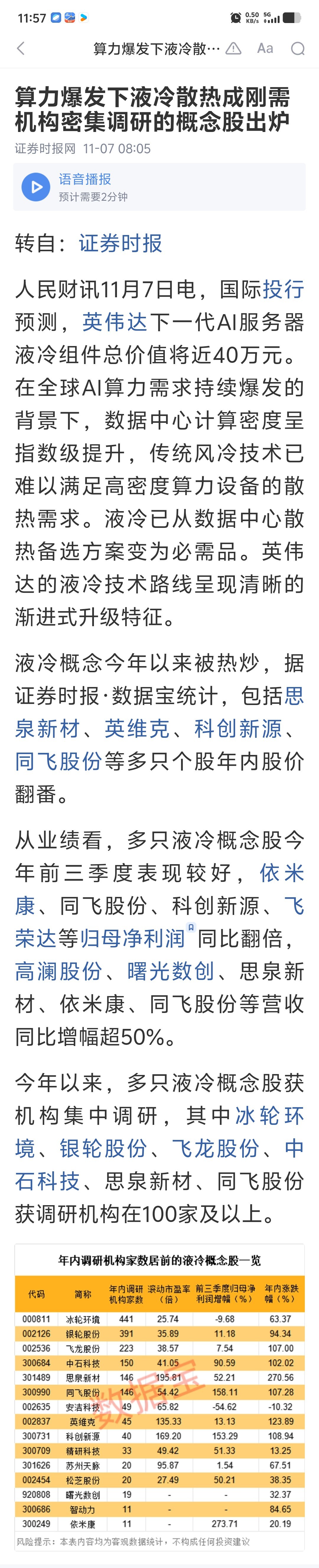 $英维克(SZ002837)$ 算力爆发下液冷散热成刚需 机构密集调研的概念股出炉
