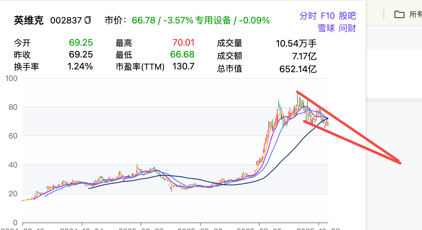 小白太多了,大多都不懂量化,给大家划下量化图形,以最近每波的最高点连成一条线,再以每波的最低点连成一条线,量化图形走势就能懂了,目前看到40以下,等40以下才可以考虑入,不排除摸到20,现在60多入的,只能说这钱不如捐给希望工程