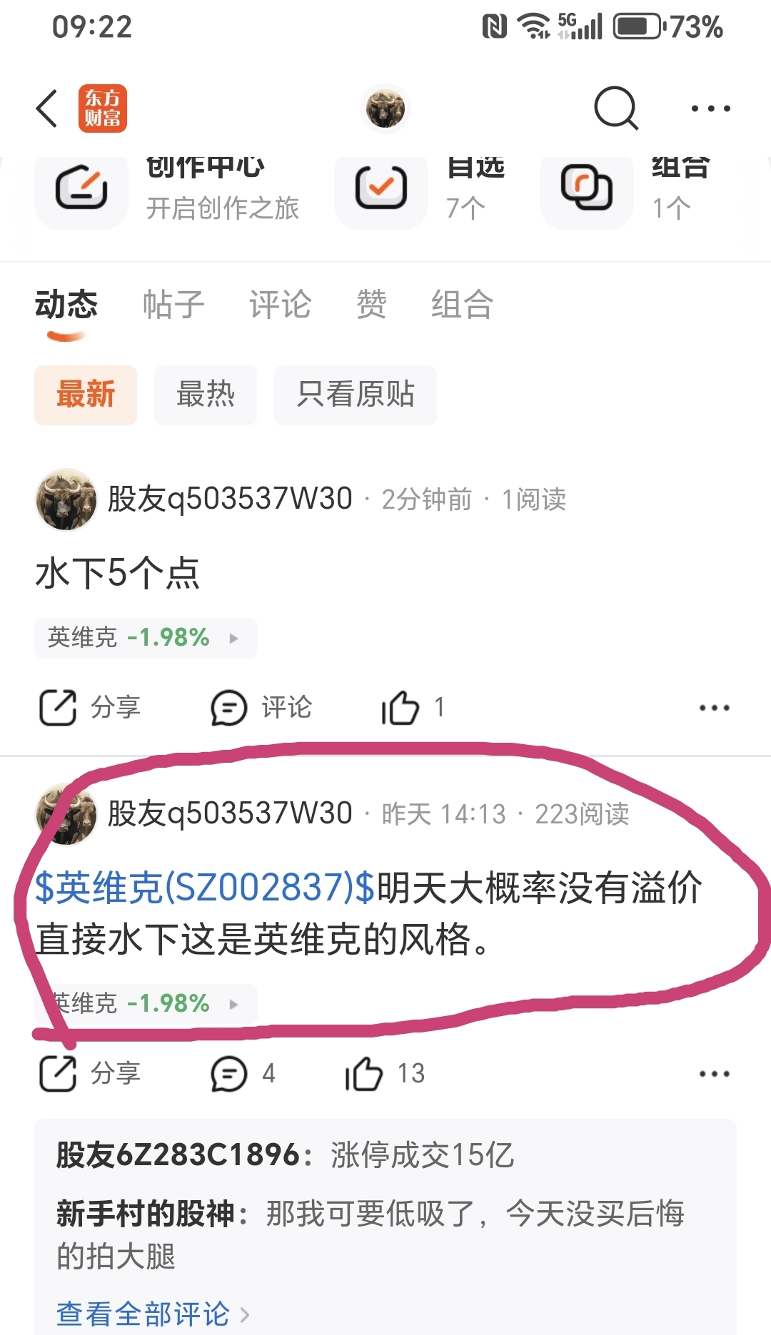 哈哈哈哈哈我昨天说了英维克没有溢价基因