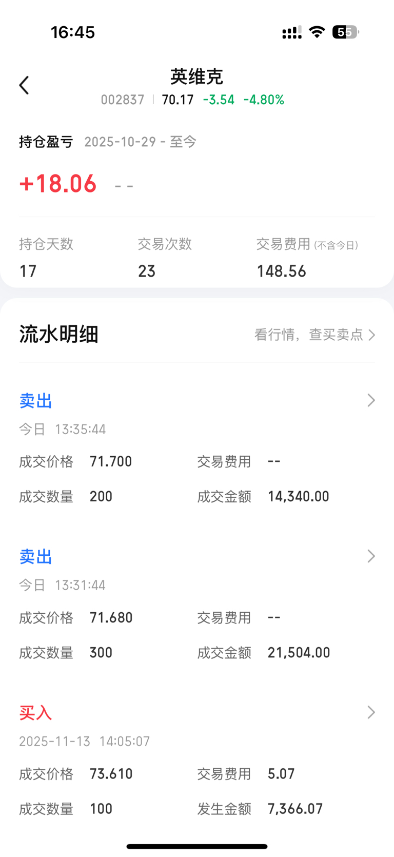 $英维克(SZ002837)$ 拿了17天 赚了18块钱 感谢主力