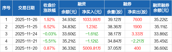 英维克:融资净买入1033.99万元,融资余额34.93亿元(11-26)
