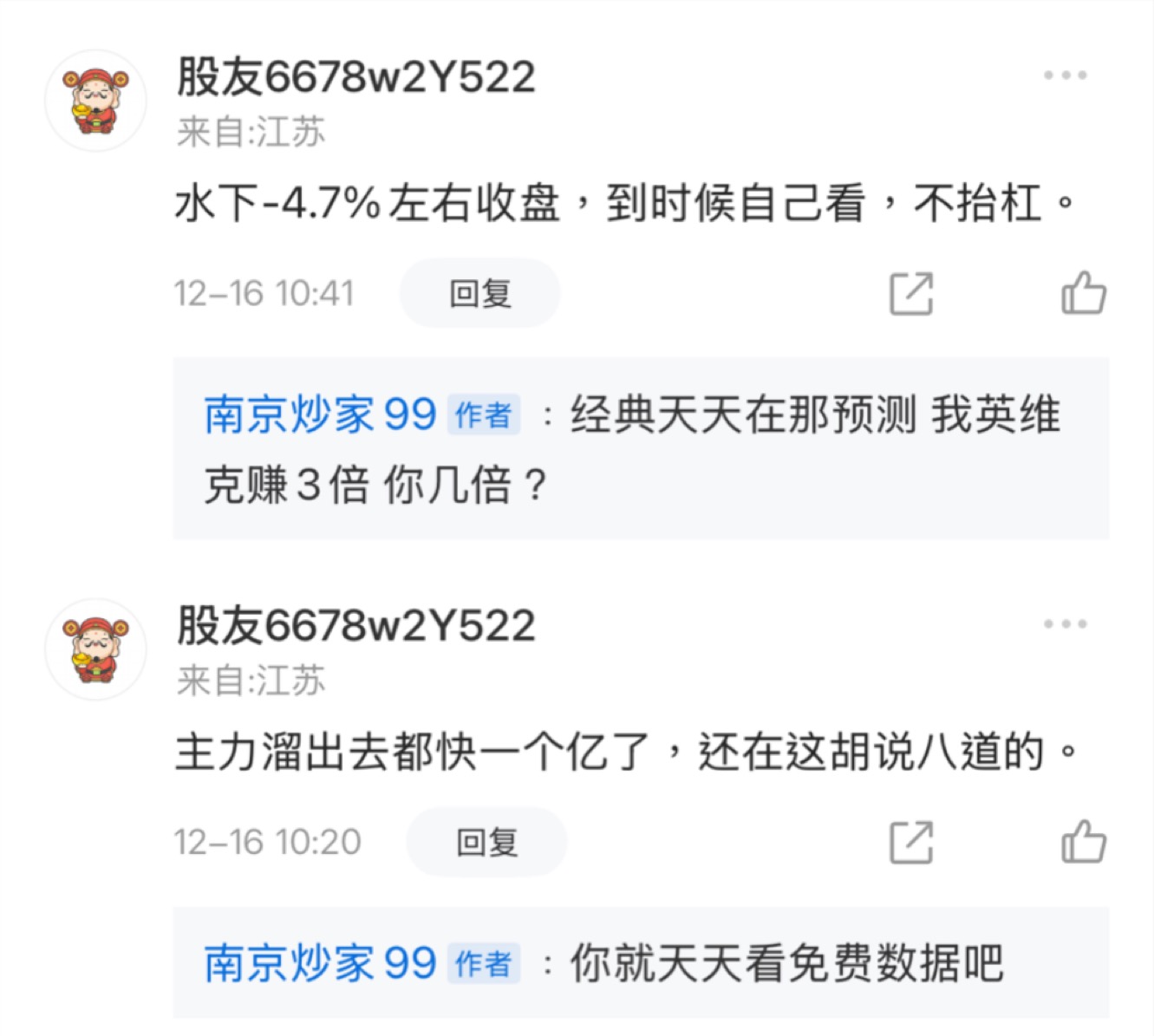 温馨提示: 1.根据《证券法》规定,禁止编造、传播虚假信息或者误导性信息,扰乱证券市场;2.用户在本社区发表的所有资料、言论等仅代表个人观点,与本网站立场无关,不对您构成任何投资建议。用户应基于自己的独立判断,自行决定证券投资并承担相应风险。《东方财富社区管理规定》