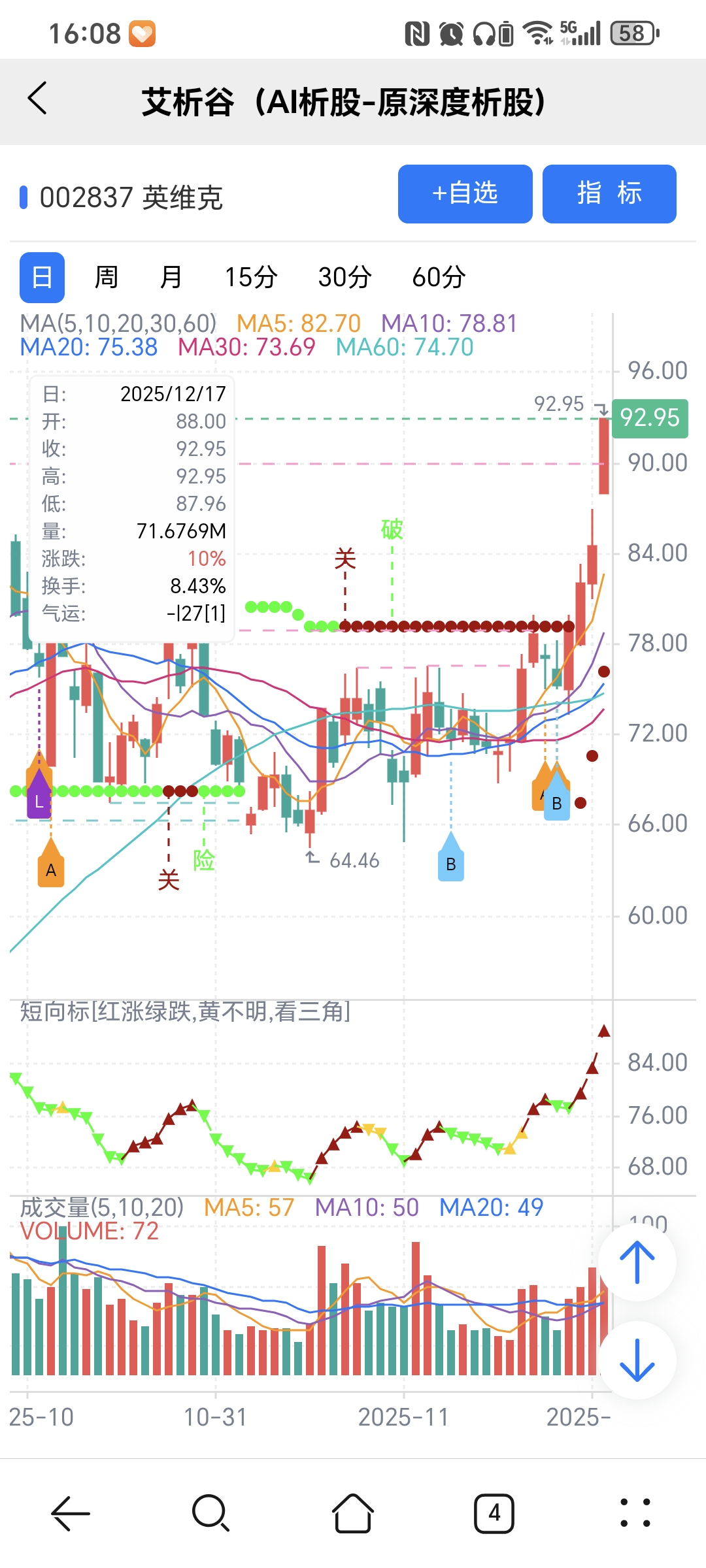 红绿小圆点是艾析谷的量化指标-超级短趋线,是趋势跟踪+突破类的量化指标,完全免费。