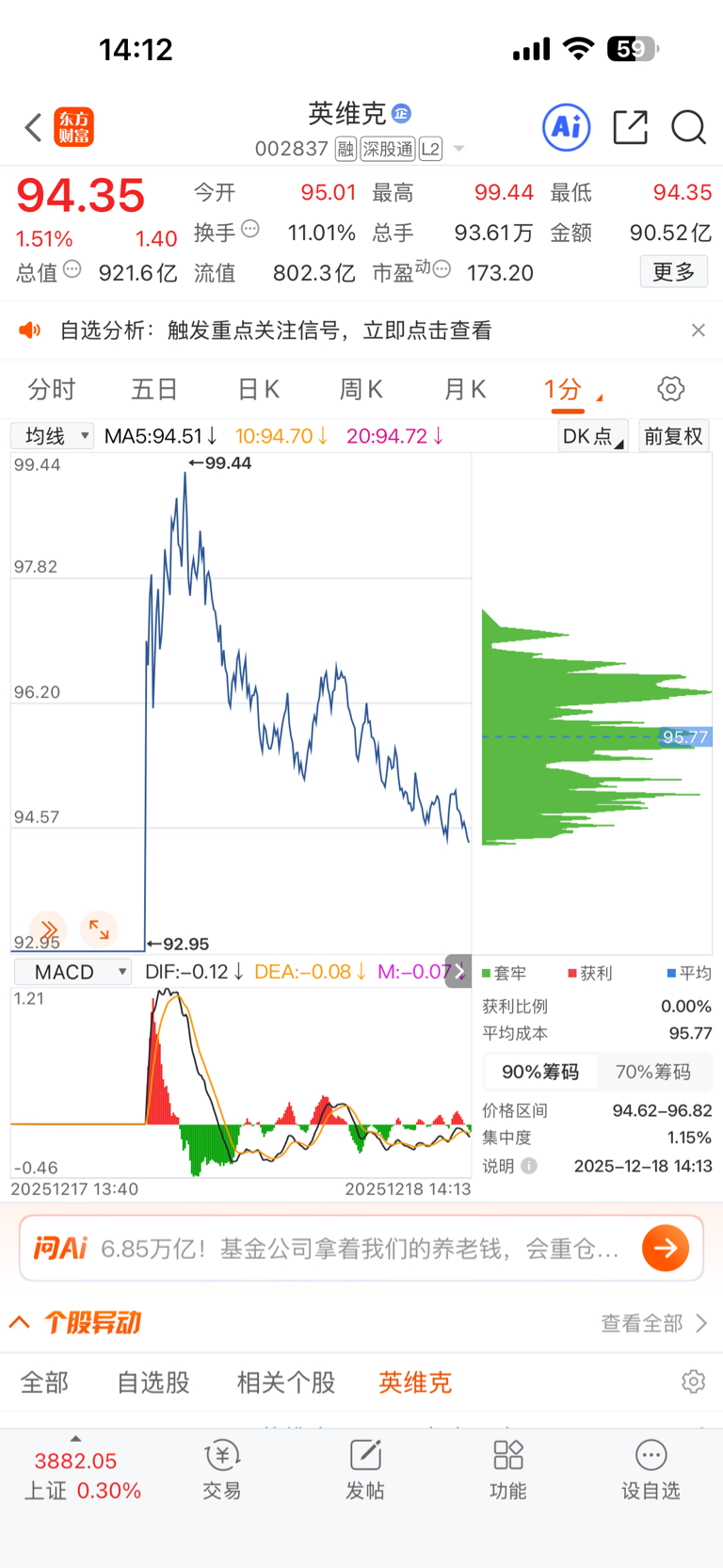 $英维克(SZ002837)$ 标准旗形分时出货图