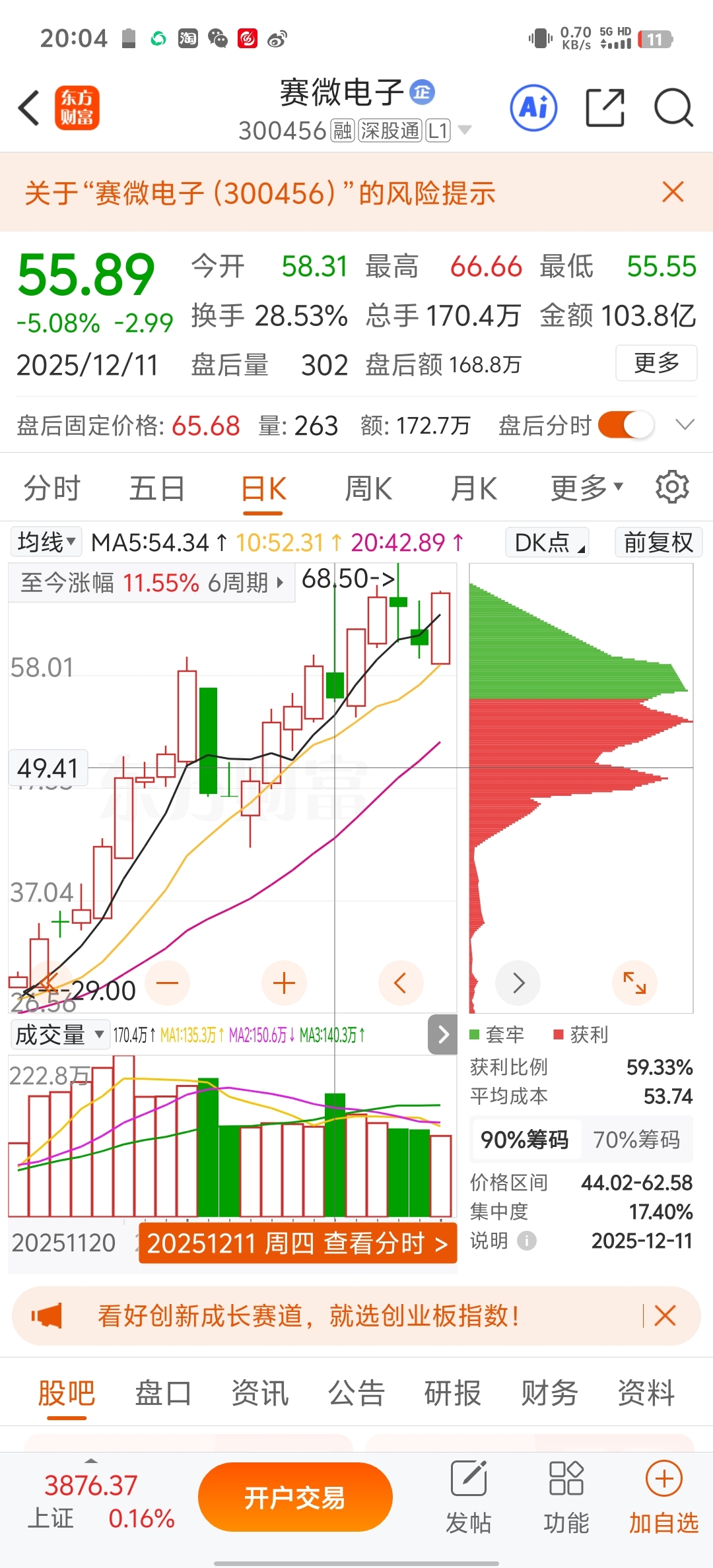 $英维克(SZ002837)$ 很多人担心对子顶就要跌,其实对子顶不一定就会跌,那是玄学。很多对子顶还出现了第二天大涨的情况,比如赛微电子12月11号出现高低两个超级对子顶,最高点是66.66,最低点为55.55,很多人以为第二天要大跌。结果第二天直接涨停了,第三天还在大涨。