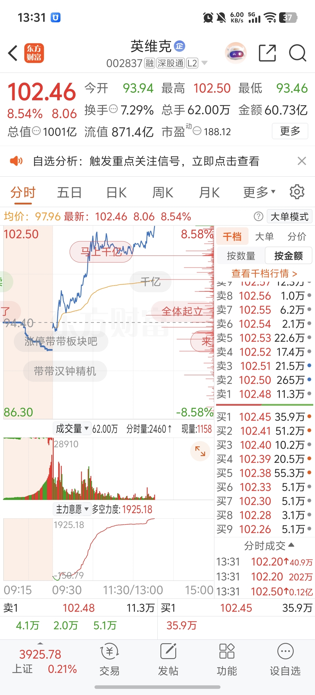 $英维克(SZ002837)$ 千亿公司了