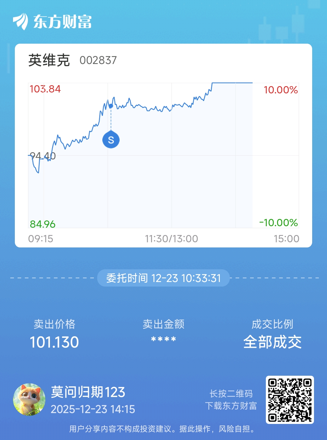 $英维克(SZ002837)$ 卖飞了