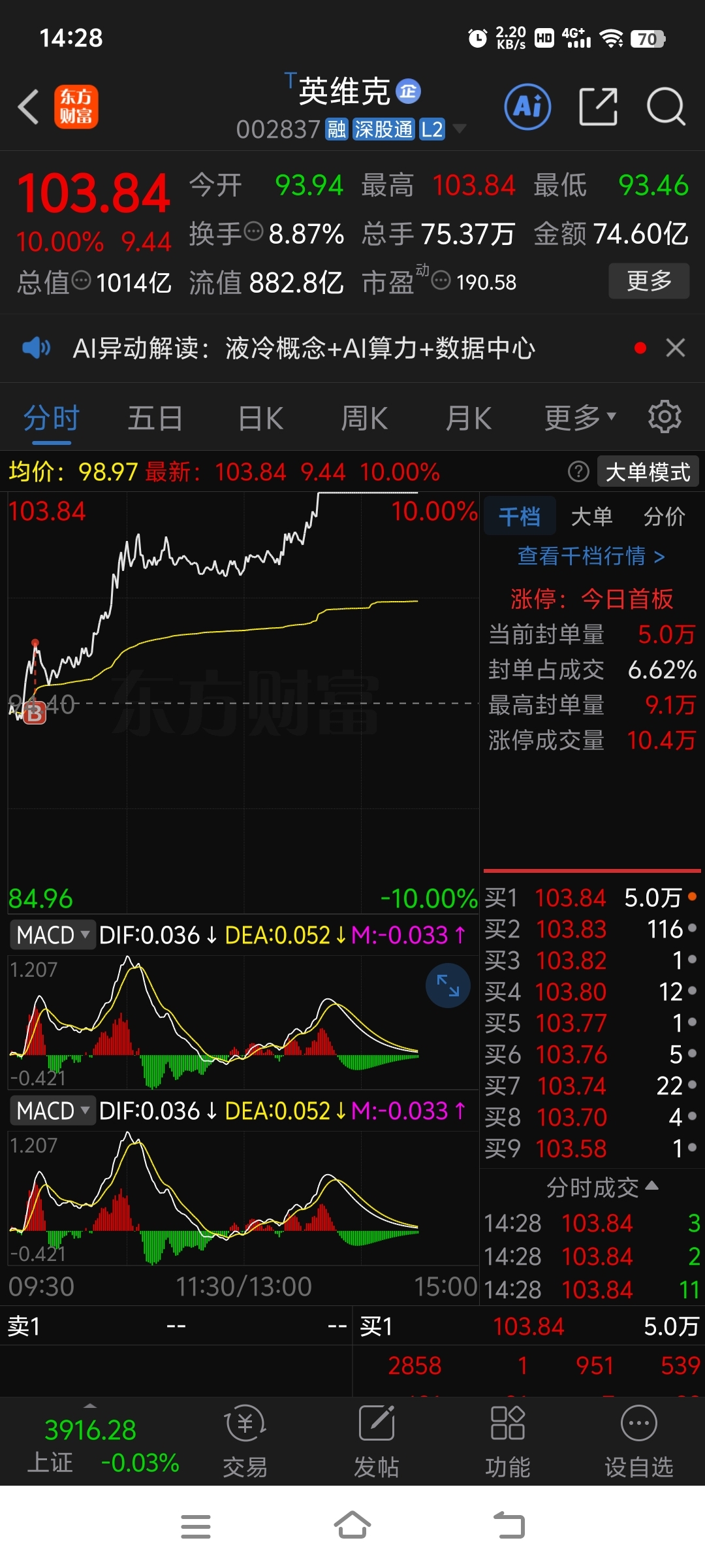$英维克(SZ002837)$ 虽然买在最高点,但是好歹涨停了