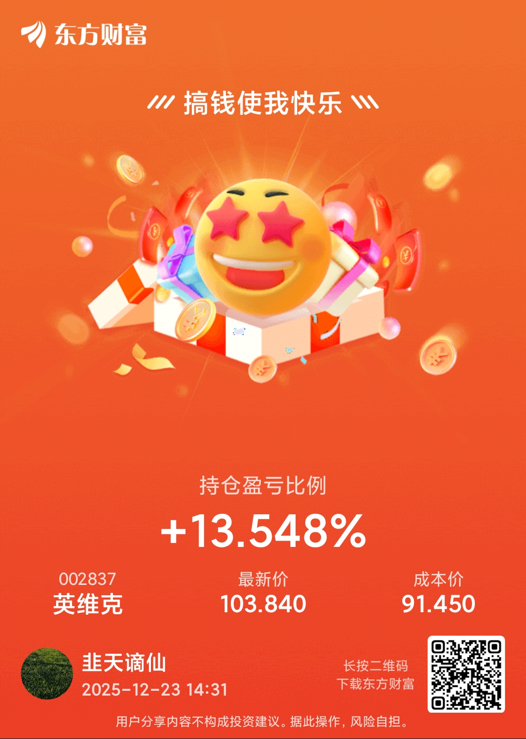 $英维克(SZ002837)$ 当天雪人利好尽出,但还是卖了雪人选了英维克,感谢我的财神爷