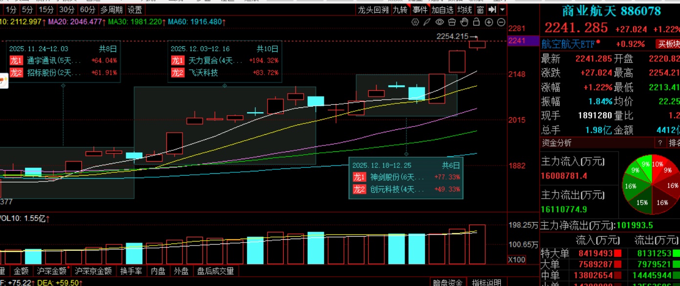 商业航天强了很多天了,前面说,神剑是带着商业航天改变打地鼠姿态的标的,神剑的连板加速代表的就是板块的加速续强,反映的一个是板块风格的变化,另一个就是板块内资金的成分和偏好。