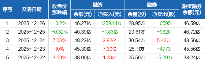英维克:融资净偿还1259.14万元,融资余额46.27亿元(12-26)