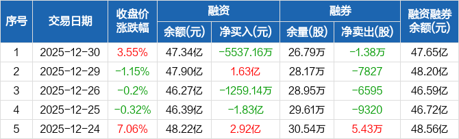 英维克:融资净偿还5537.16万元,融资余额47.34亿元(12-30)