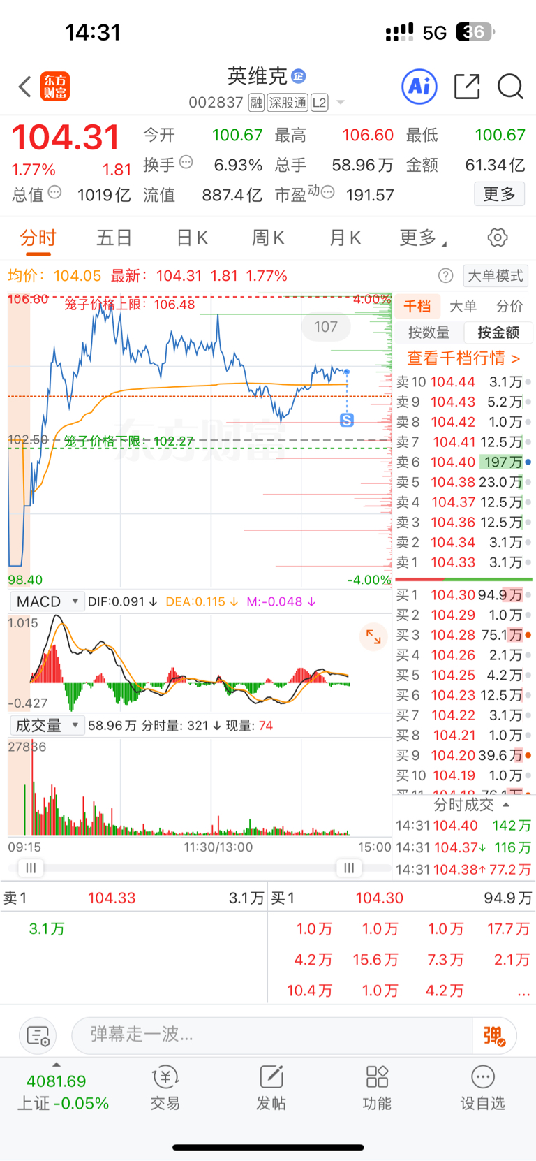 大盘跳水,明少获利了结英维克。下次再战。