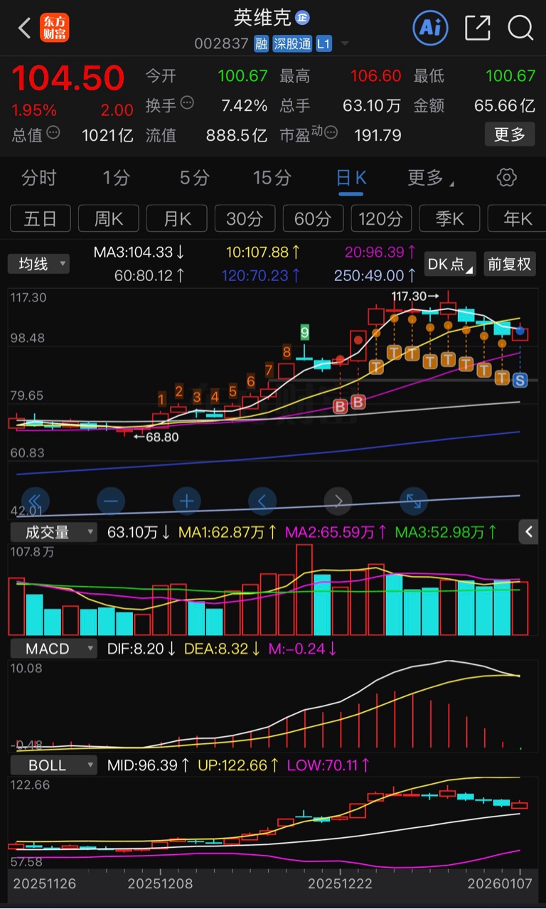 $英维克(SZ002837)$ 兄弟们遵循交易纪律,今天果然给了反弹就要跑,没给阳包阴证明弱了,今天是符合卖点的,至于明天如何是明天的交易了,从最多8000多的利润回撤到1600,下次一定不能格局,落袋为安永远是对的