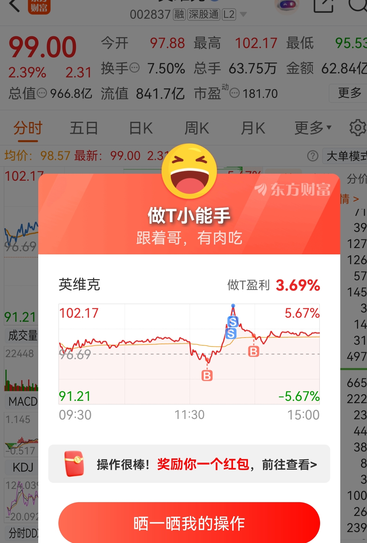 $英维克(SZ002837)$ 套了三天,终于挣了点