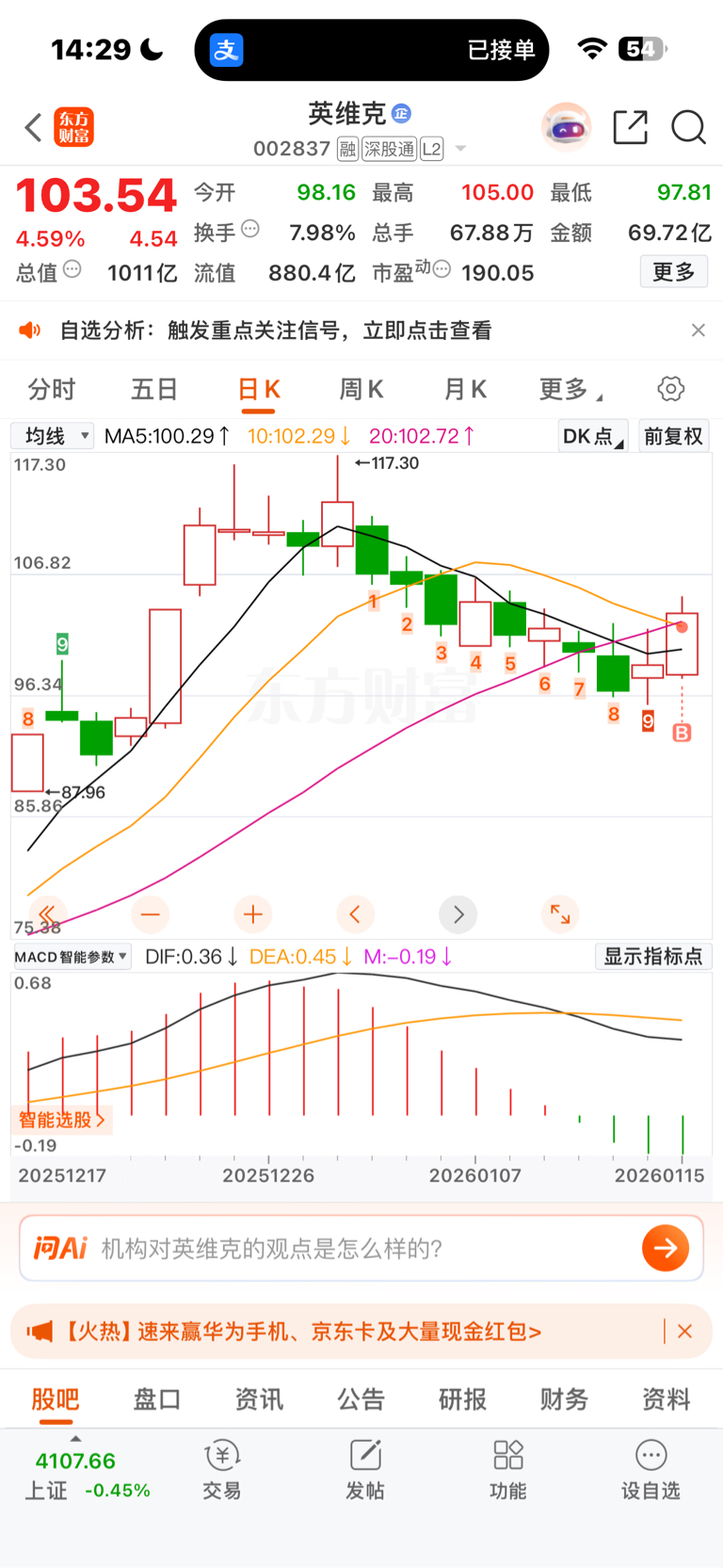 $英维克(SZ002837)$ 我已全仓,感觉良好,本为102.23。