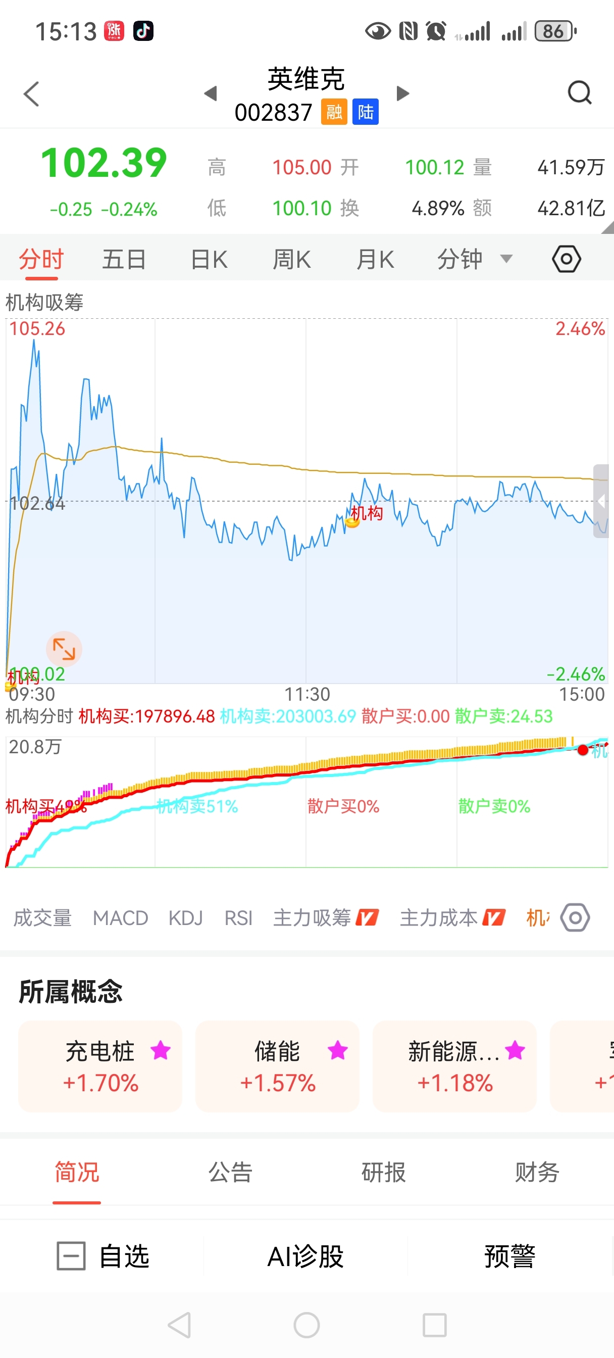 $英维克(SZ002837)$ 机构继续吸筹进场,成本100以下,博年报预增,目标130!
