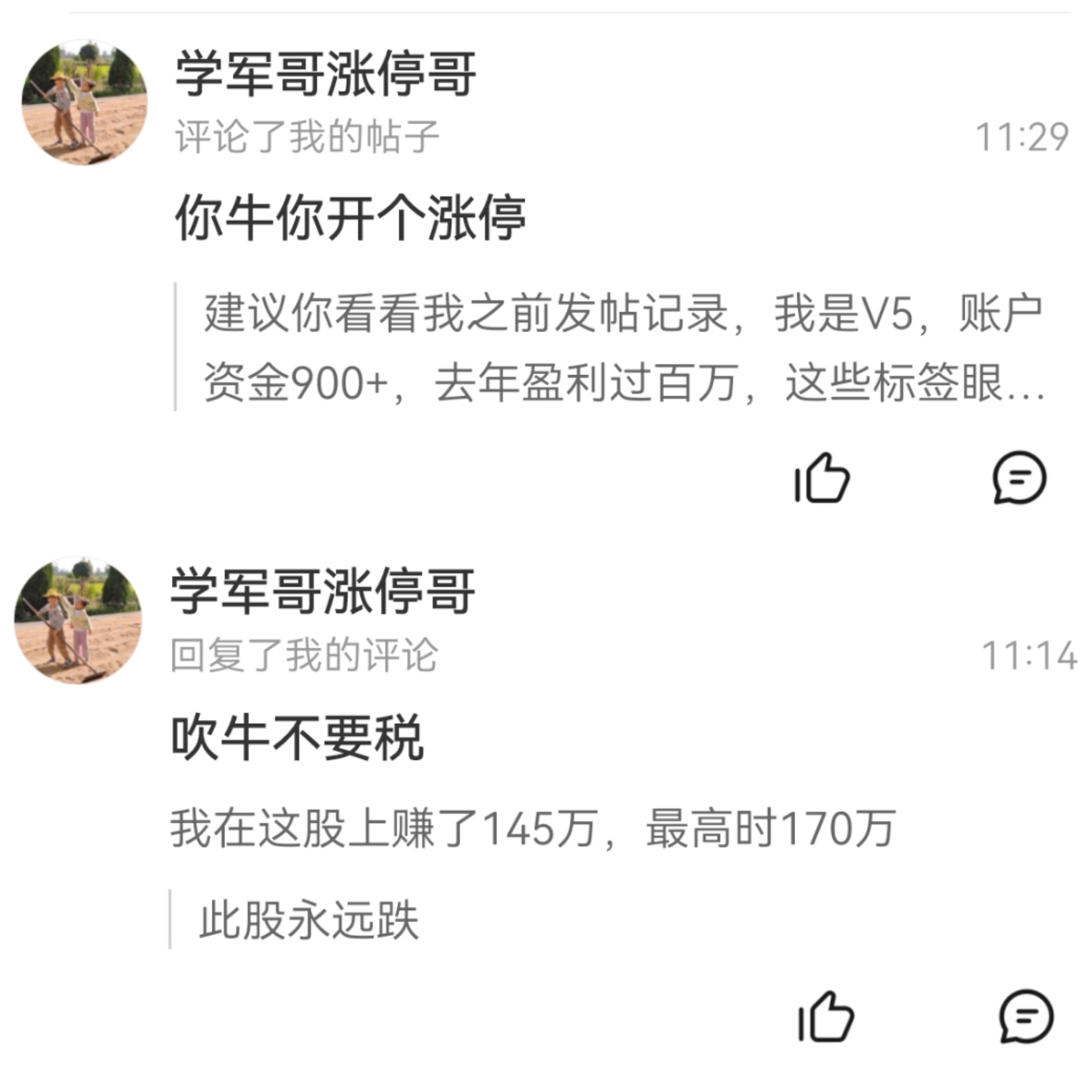 温馨提示: 1.根据《证券法》规定,禁止编造、传播虚假信息或者误导性信息,扰乱证券市场;2.用户在本社区发表的所有资料、言论等仅代表个人观点,与本网站立场无关,不对您构成任何投资建议。用户应基于自己的独立判断,自行决定证券投资并承担相应风险。《东方财富社区管理规定》