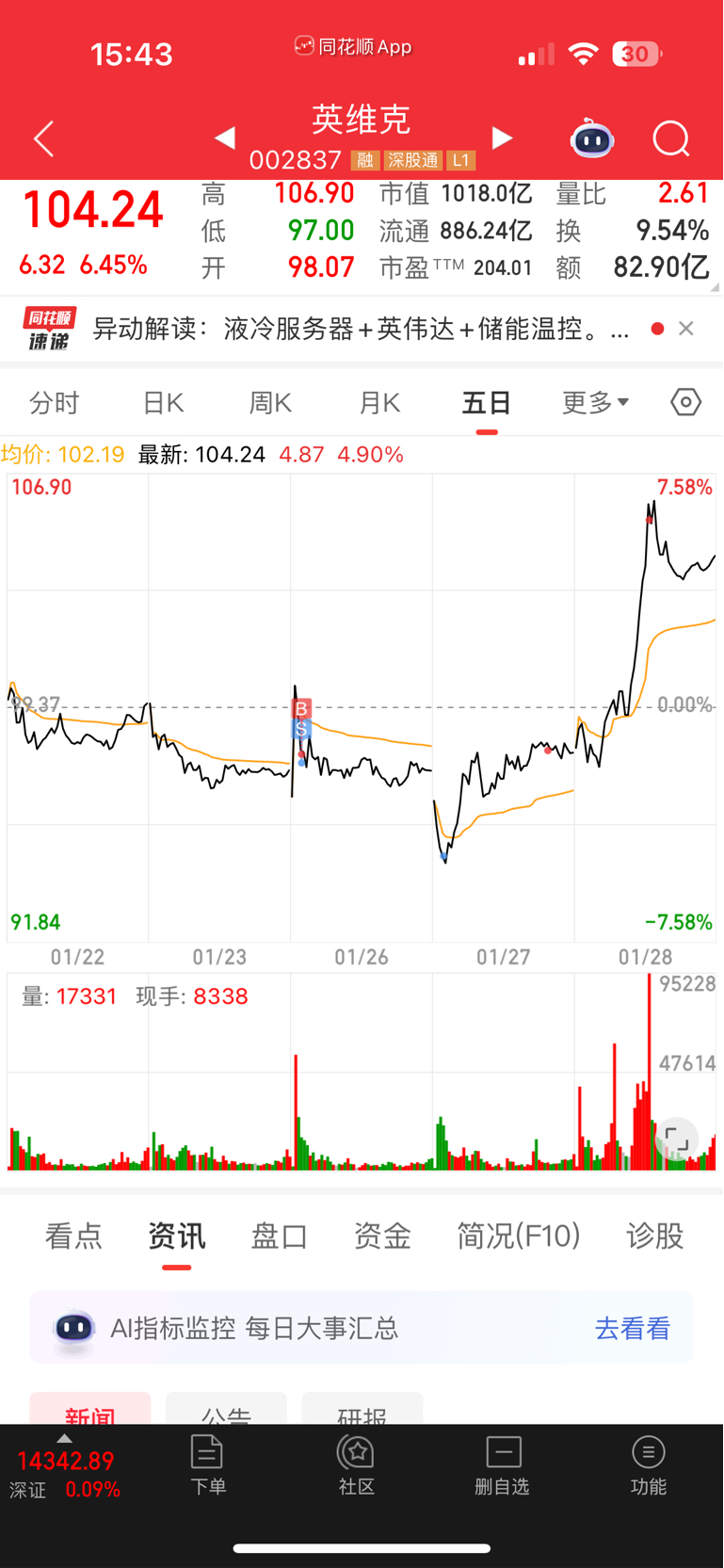 $英维克(SZ002837)$ 很好。好样的