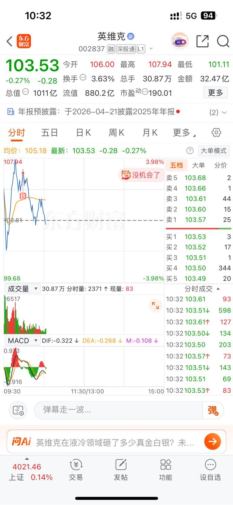 $英维克(SZ002837)$ 无语的
