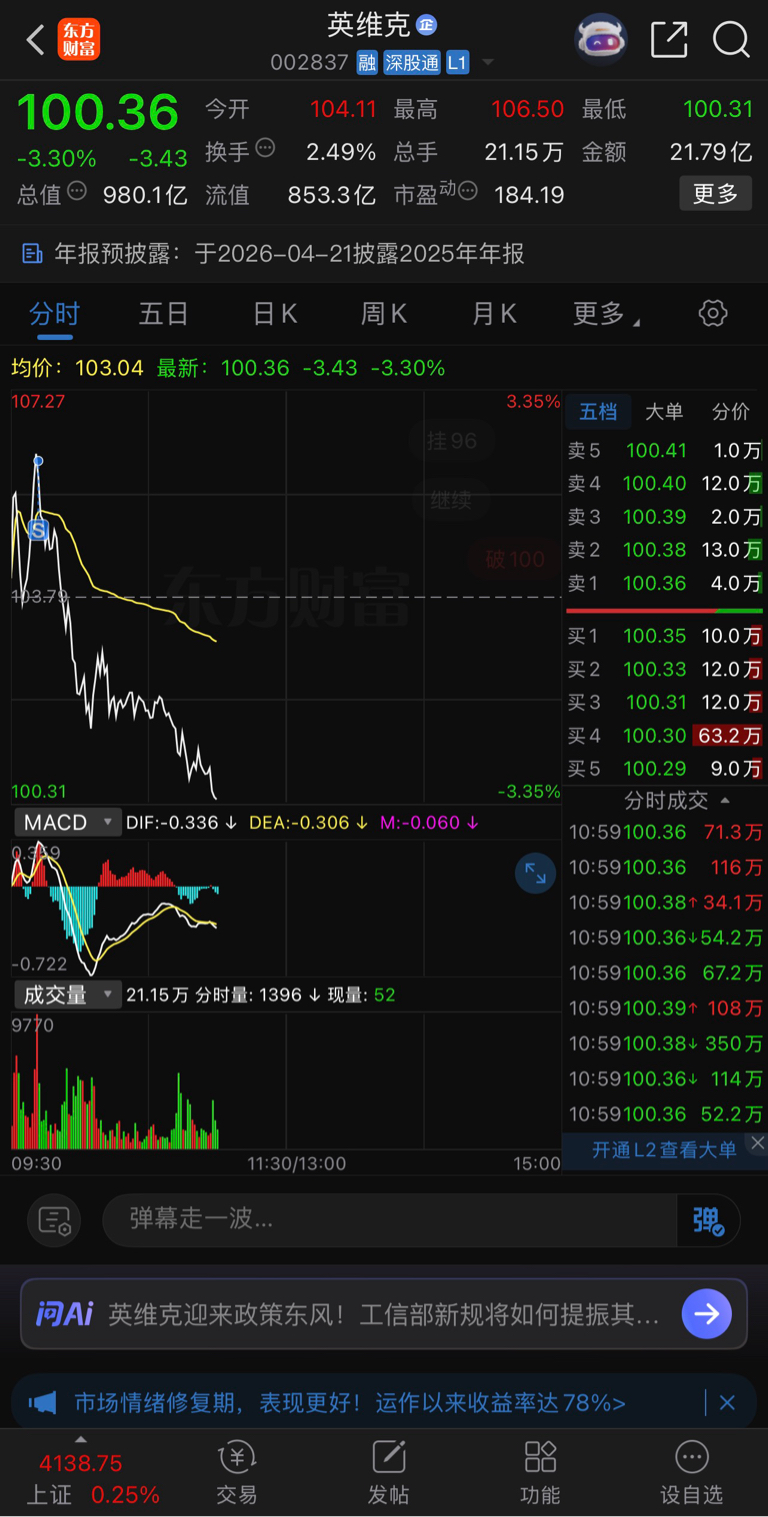$英维克(SZ002837)$ 清仓过年了