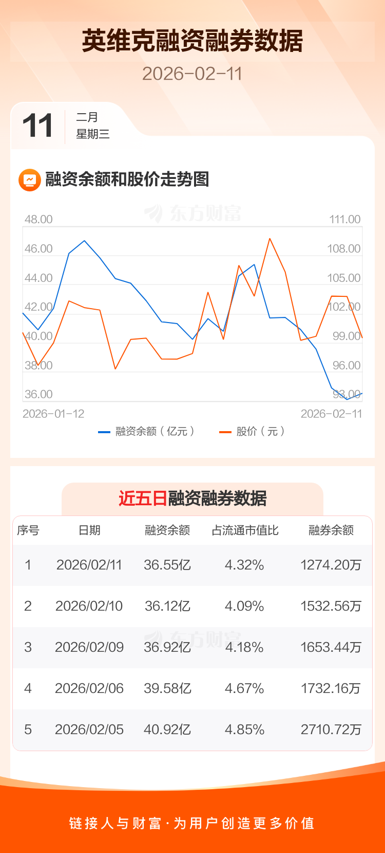 交易所最新数据显示,英维克于2026年2月11日获融资买入3.31亿元,融资偿还2.88亿元,当日融资净买入4314.48万元。目前,该股融资余额36.55亿,占流通市值比例为4.32%。