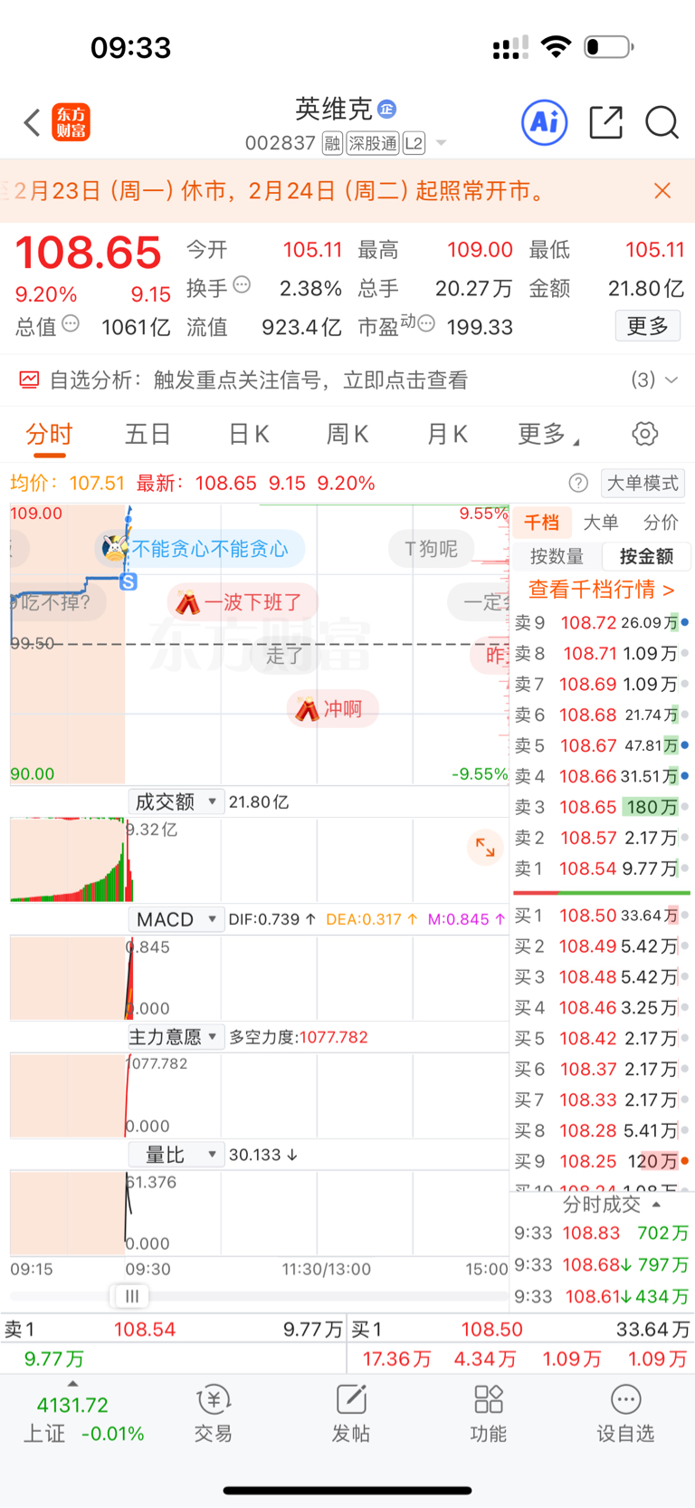 $英维克(SZ002837)$ 昨天亏1000,今天赚几百走了,后悔低位没加仓