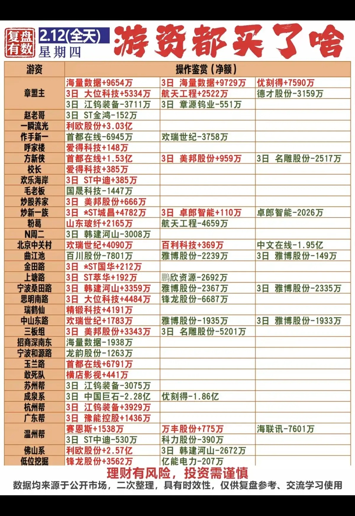 2月12号,游资大佬买了啥?潜力股推荐,飞凯材料(存储及光纤涨价受益)